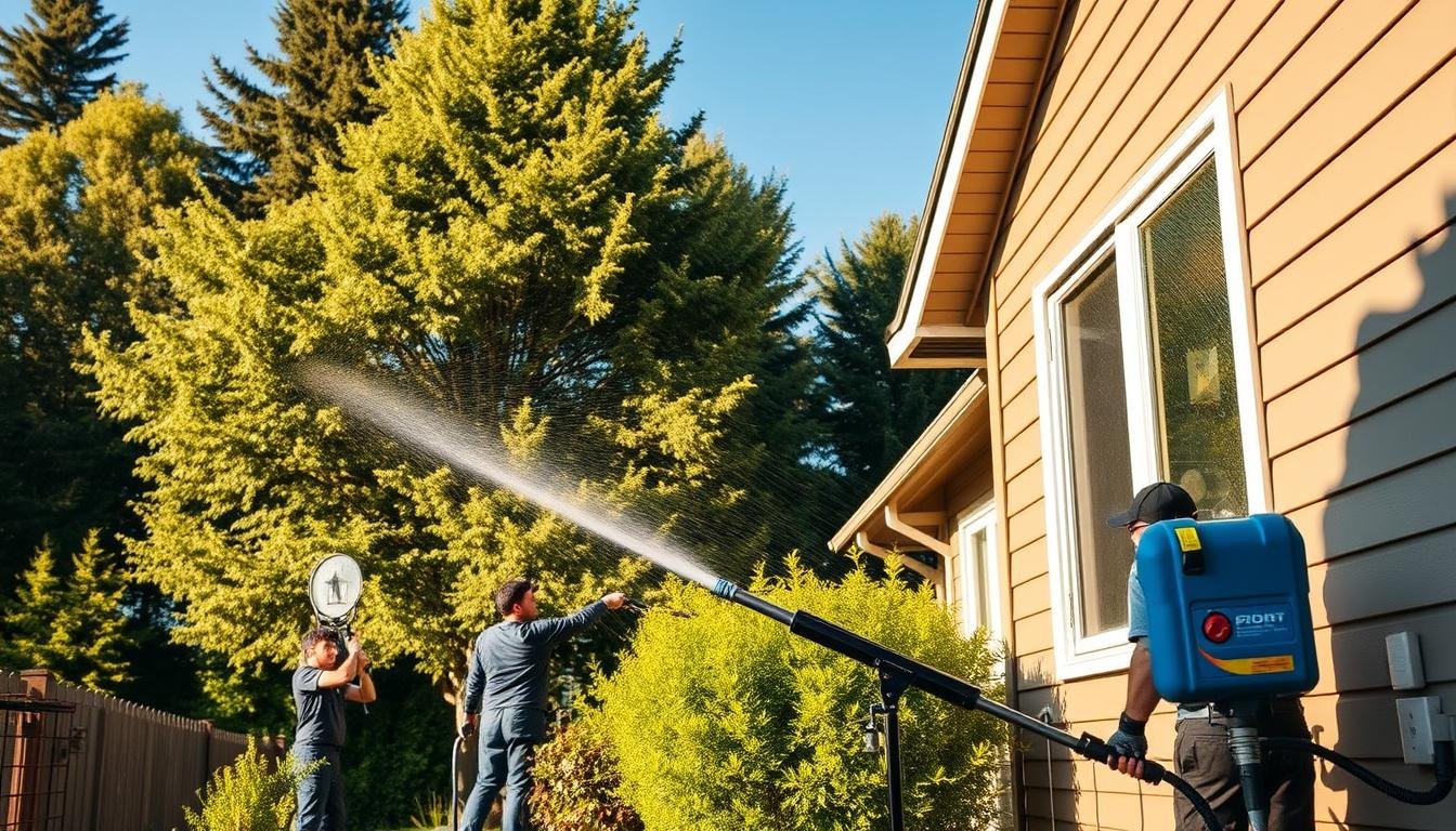To get your exterior sparkling clean, you need to know the power washing steps. Whether you live in Oregon City or Battle Ground, WA, learning these techniques is key. It can greatly improve your property’s look and last longer.