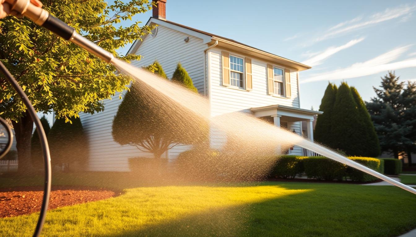 Before starting soft washing on your home’s exterior, it’s key to prepare the area. This ensures a safe and effective cleaning process. Proper preparation prevents damage to your home and its surroundings, leading to a successful outcome.