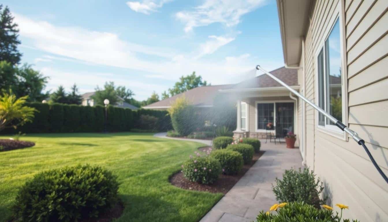 Soft washing is great because it gently cleans without damaging surfaces. It’s perfect for materials that could get hurt by high-pressure washing. This way, our exterior surfaces stay in great shape.